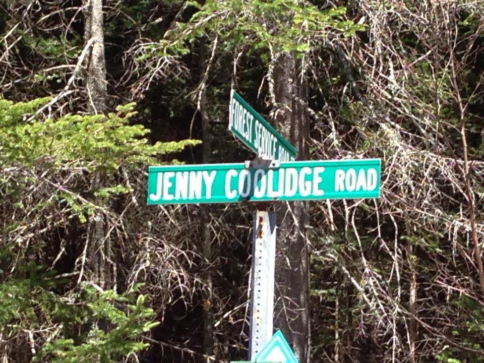 The road sign that kept the mystery alive—Jenny Coolidge Road in Weston, Vermont.